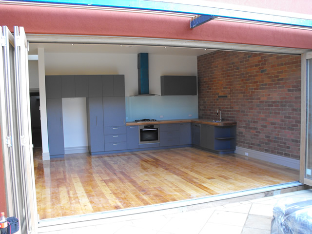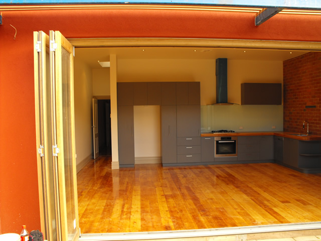Definitive Homes, completely removed the rear of the building. We then rebuilt a new extension with a cathedral ceiling increasing the feeling of light and space. The new extension consisted of a new Kitchen, meals and lounge area, a new laundry and bathroom. The installation of Bi-Fold doors opening onto a courtyard area allows the home to maximize its entertaining space. After years of living in cramped conditions the owners are now loving spending time in there home.
